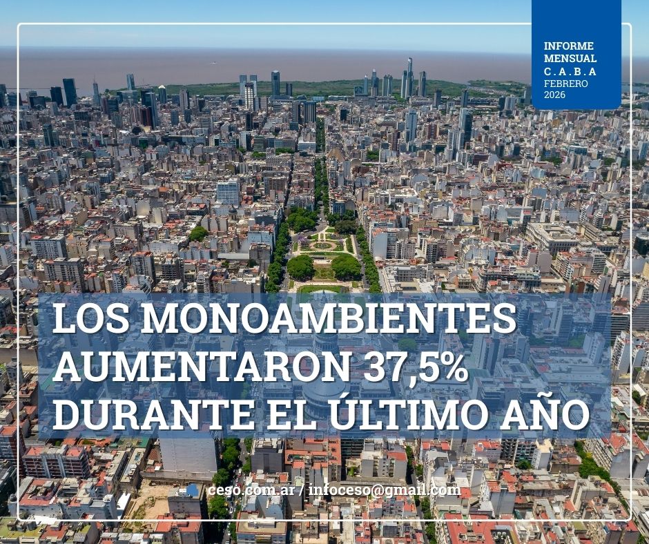 Con respecto a febrero de 2025, las variaciones de los departamentos de 1, 2 y 3 ambientes fueron de 37,5%, 30% y 28,6%, respectivamente.